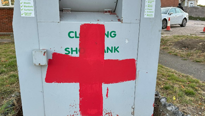 A St. George’s Cross painted near a mosque and Islamic centre in Reading, UK.