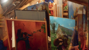 It is Tuesday, April 8, 2025, 10:42 am. Artist A. is mixing magenta and cobalt blue oil paint – produced by the famous Blockx manufacturers of artist materials – with a few drops of alkyd...