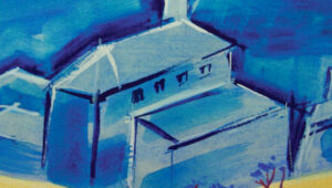 On our book’s cover stands a small church. Coloured in a blue that suggests the haze of a summer’s day, it is set against a yellow landscape dotted with vines. We chose this image partly for its aesthetic...