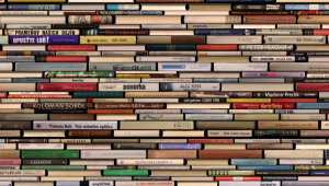 The author photo below shows me at the entrance to a gallery exhibit built up of approximately 10,000 discarded books, reflected in infinite multiples by mirrors on floor, sides, and ceiling, constructed...